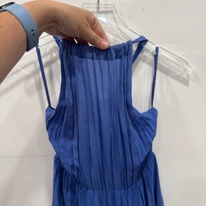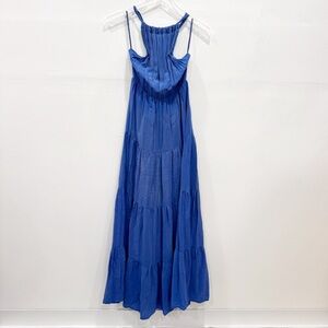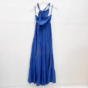 Anthropologie Line & Dot Silk Maxi Dress Tiered Halter Blue Small *flawed*
