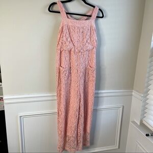 Anthropologie Line and Dot pink lace jumpsuit size small