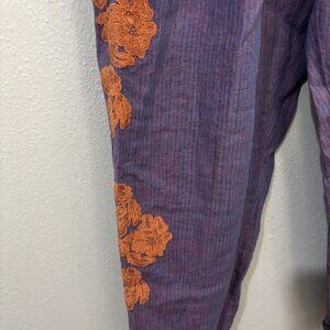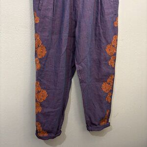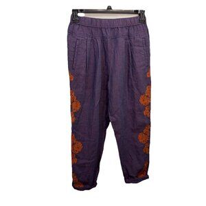 Anthropologie Linen Pants Crop Elastic Waist Pull On Embroidery Trim Pockets M.