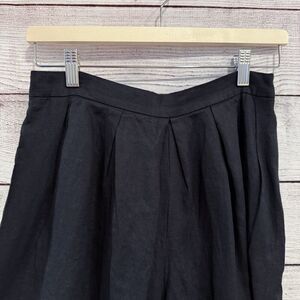 Anthropologie Linen Pleated Culotte Trousers Black Wide Leg Cropped Pants XL