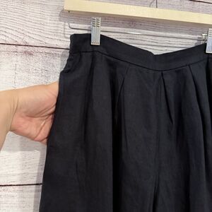 Anthropologie Linen Pleated Culotte Trousers Black Wide Leg Cropped Pants Small