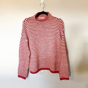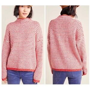Anthropologie Linnea Mock Neck Striped Striped Sweater red white small