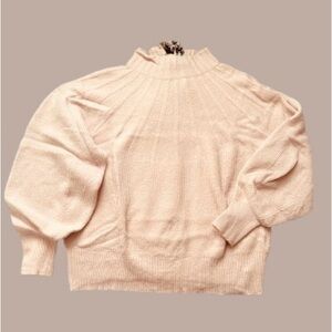 Cozy mock-neck sweater with ribbed texture. Has a keyhole design in the back where the beautiful floral scarf goes.
