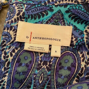 Anthropologie Lissa Romper Ballon Sleeve Blue Motif Paisley Size Small
