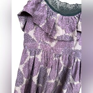 Anthropologie Lit Purple Ruffle 100% Silk Lace Dress Size 10 Lined Floral