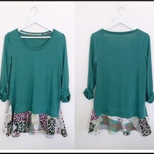Little Yellow Button Blouse Size small green Floral Flounce Tunic Rolled Tab