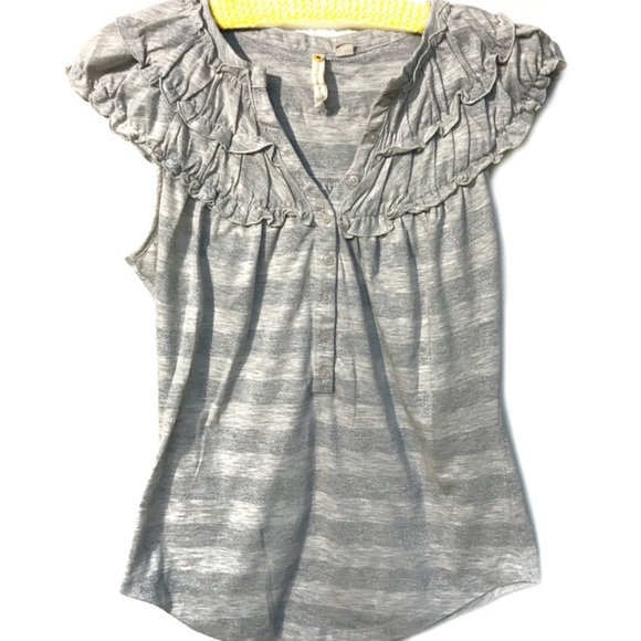 Anthropologie Little Yellow Button Gray Striped Top Size Small