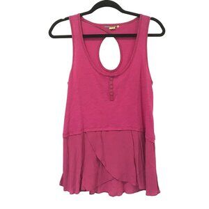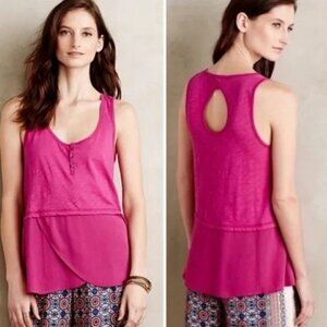 Anthropologie Little Yellow Button Pink Henley Keyhole Tiered Tank Top Size S Bo