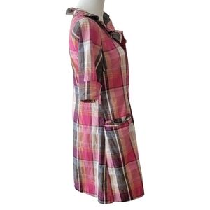Anthropologie Little Yellow Button Plaid Shift Mini Dress Size Medium