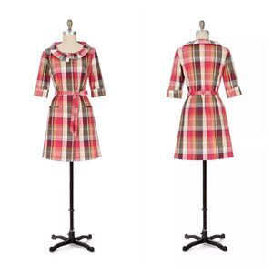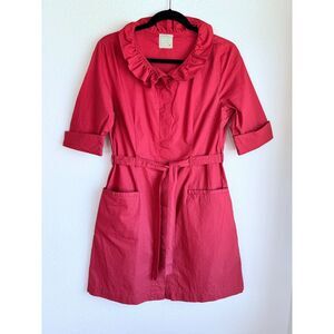 Anthropologie Little Yellow Button With a Flourish Ruffle Neck Red Shirt Dress