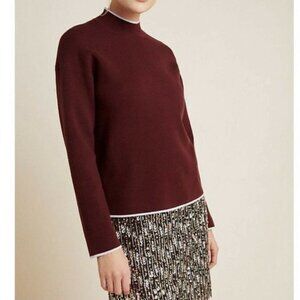 Anthropologie Lizzie Mock Neck Sweater XS | Burgundy Knit Pullover Cozy Fall