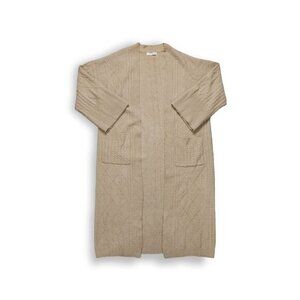 Anthropologie Long Cable Knit Wool Open Front Cardigan Medium