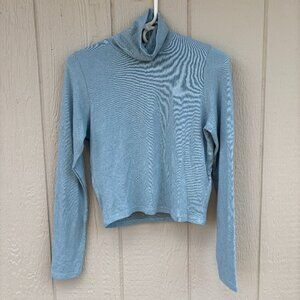 Anthropologie Long Sleeve Turtleneck Sweater Top Women's Small Baby Blue Cropped Soft