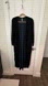 Stylish long black cardigan paired with gray wide-leg pants. Perfect for a chic, modern look.