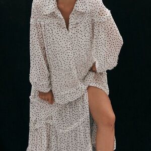 Anthropologie Long-Sleeve Smocked Tiered Maxi Dress Polka Dot Relax