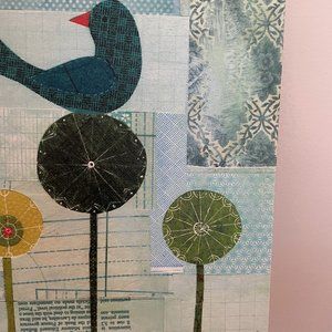 Anthropologie Lorena Siminovich Original Blue Bird Stretched Canvas Painting