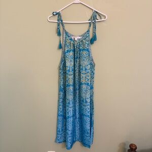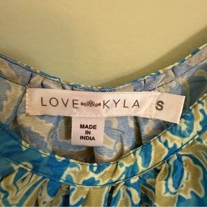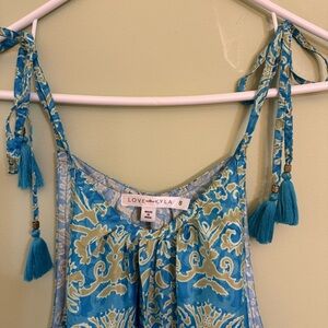 Anthropologie Love Kyla Blue and Green Sleeveless Dress silk polyester size S