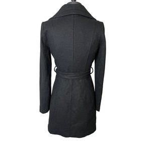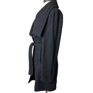 Anthropologie Love & Liberty Black Asymmetrical Belted Wrap Wool Coat Size 4
