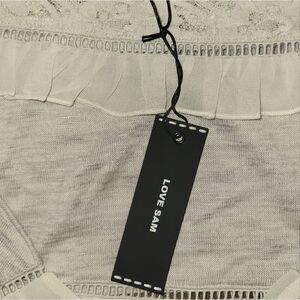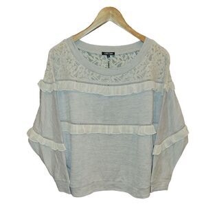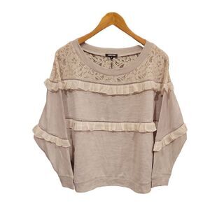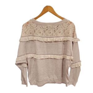 Anthropologie Love Sam Grey Beige Pullover Ruffle Lace Inset Sweatshirt Size S
