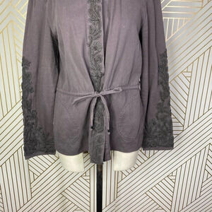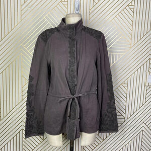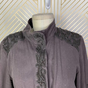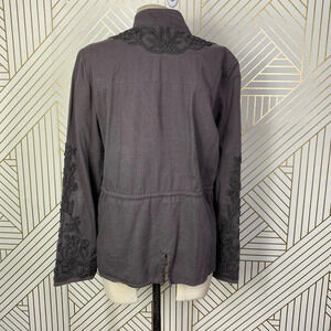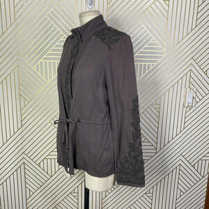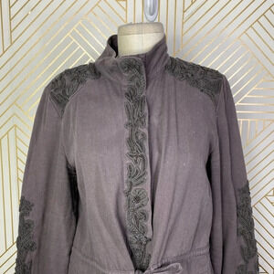 Anthropologie Love Sam Travis Military Jacket Beaded Charcoal Gray Size Medium