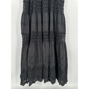 Anthropologie Love The Label Maxi Dress V-Neck Eyelet Lace Tiered Swiss Dot