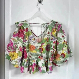 Anthropologie Love The Label Mitzie Floral Ruffle Blouse Size XS