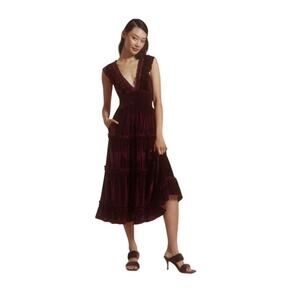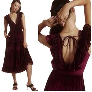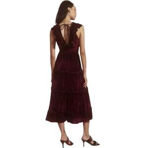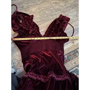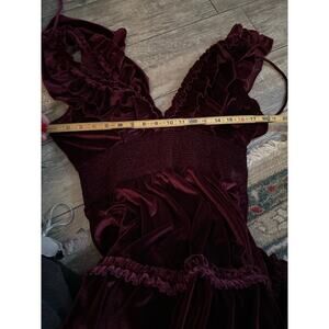 Anthropologie Love The Label Ruffled Velvet V-Neck Maxi Dress Size Large