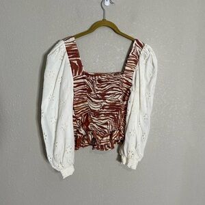Anthropologie Love the Label Eyelet Puff Sleeve Mixed Print Blouse Small