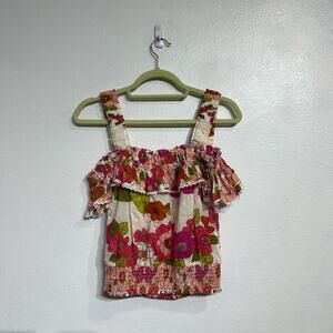 Small ivory, pink, orange and green blouse by Anthropologie Love the Label in excellent preowned condition.