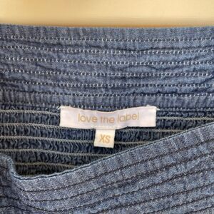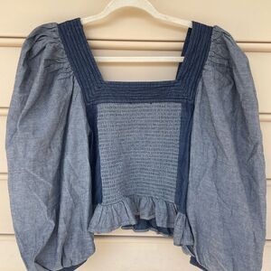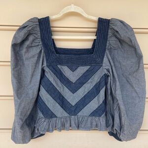 Anthropologie Love the Label Off-the-Shoulder Denim Striped Top with Bubble Slee