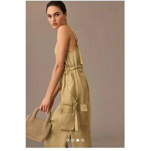 Anthropologie Love the Label Satin Utility Cargo Midi Dress