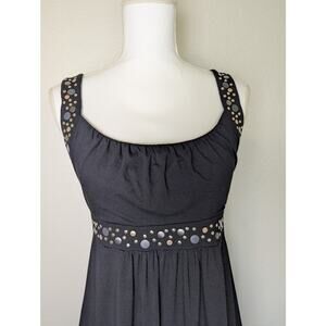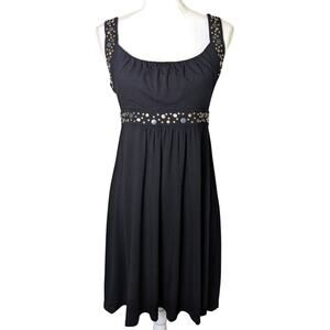 Anthropologie Lucy and Laurel Babydoll Studded Black Mini Dress Women Size M Y2K
