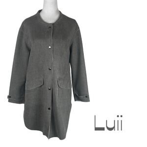 Anthropologie Luii Gray Raw Edge Metal Snaps Academia Prep Coat NWOT Size S