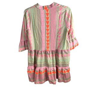 Anthropologie Luisa Perla Tiered Split Neck Bell Slevee Aztec Tribal Dress Small