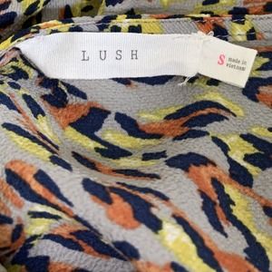 Anthropologie Lush Top Womens Small Gray Multicolor Abstract Drape Front Blouse