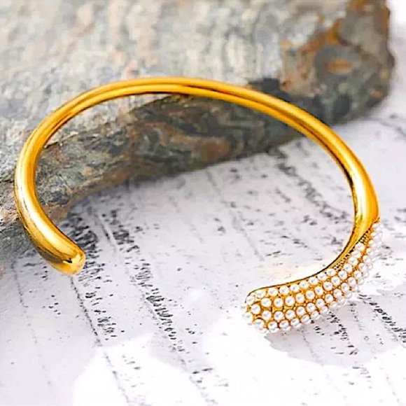 Anthropologie Luxury Pearl Irregular Bangle Cuff Edgy Geometric Gold Plated