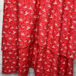 Anthropologie M ORIGAMI BIRD Print Short Sleeve Fit & Flare Ruffle Dress Red