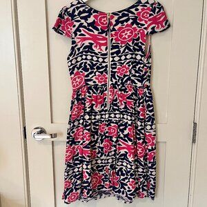 Anthropologie MAEVE Dress with blue and pink block pattern, great Easter, church, work dress.