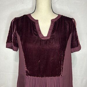 Anthropologie MAEVE Ingrid Velvet Dress Tunic Burgundy Maroon Size XSP Petite.
