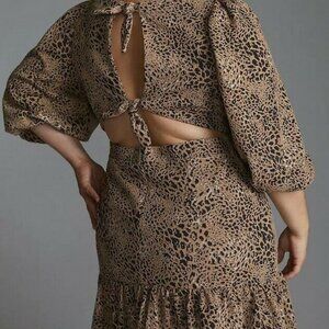 Anthropologie MAEVE Knit Cut-Out Back Tie Leopard Print Dress