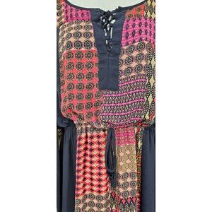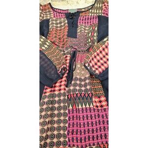Anthropologie MAEVE Patchwork Dress Blouson Balloon Sleeve Boho Hippie Womens M