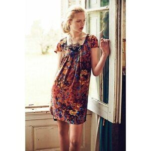 Anthropologie MAEVE Pintura 100% Silk Shift Dress Size XS Floral Print