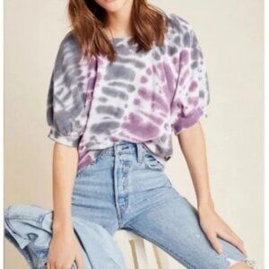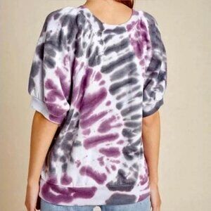 Rendered in a contemporary tie-dyed print, this puff- sleeved sweatshirt is sure to be a favorite.