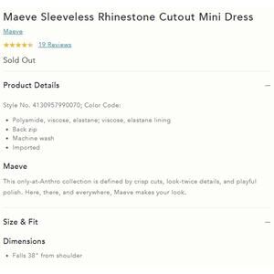 Anthropologie MAEVE Sleeveless Rhinestone Cutout Mini Dress
