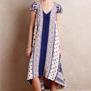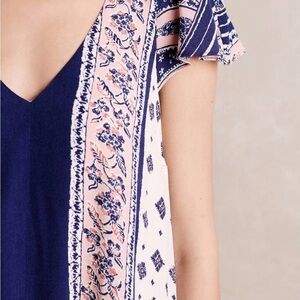 Anthropologie MAEVE Summertide Swing Dress Navy Blue Pink Boho Midi Size L
