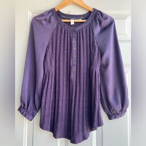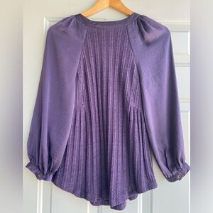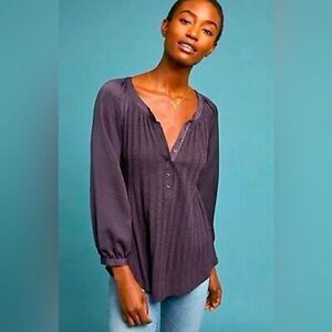Anthropologie MEADOW RUE Purple Kersee Henley Blouse Top Mixed Materials Size XS