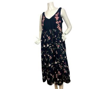 Anthropologie MIDI Dress Size Small Sleeveless Lola Embroidered Floral Black