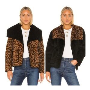 Anthropologie MINKPINK Let It Happen Leopard Print Reversible Jacket Coat
