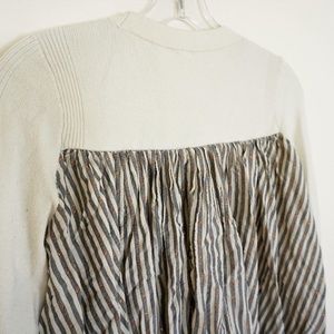 V neck, buttons like a cardigan, striped park is flowy and feminine. Could be called a tunic.