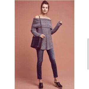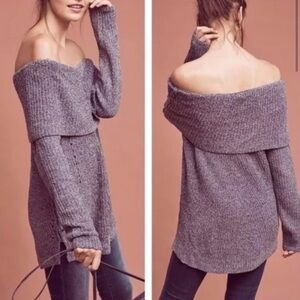 Super soft off the shoulder sweater by Moth for Anthropologie. A soft chenille knit with an off the shoulder over sized fit.